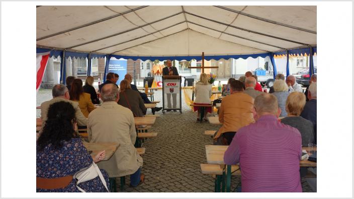 Unter dem Titel „Deutschland, was nun? Leben und Gestalten in unsicheren Zeiten.“ beging die CDU Dahme-Spreewald den Tag der Deutschen Einheit in Golßen. Als Gast und Festredner begrüßten die Teilnehmer den ehemaligen Bürgerrechtler und Politiker Arnold Vaatz. Auch Landratskandidat Sven Herzberger war vor Ort.